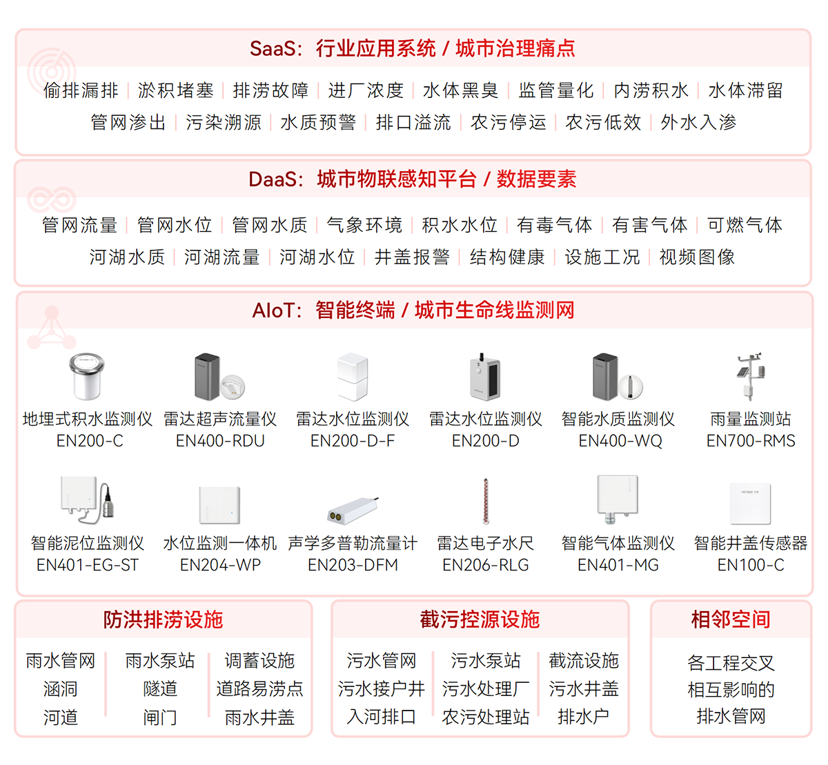 對排水設(shè)施(雨污水管網(wǎng)、窨井蓋、截流泵站、提升泵站、抽水泵站、農(nóng)村污水處理站、溢流井、排水井、污水處理廠、調(diào)蓄設(shè)施等)關(guān)鍵節(jié)點、易澇積水點,河湖水位、流速,管網(wǎng)液位、流速、水質(zhì),內(nèi)澇積水等指標(biāo)進行實時數(shù)據(jù)監(jiān)測,形成設(shè)施完整、拓撲清晰、位置準確的排水設(shè)施“一張圖”,為排水空間規(guī)劃、設(shè)計、排水設(shè)施改造提供決策支持。